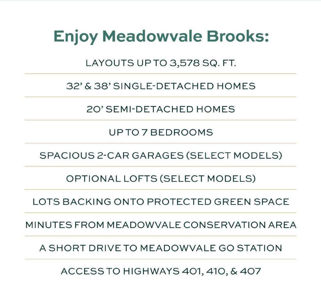 Discover a community where every detail reflects the perfect blend of nature, connection, and contemporary living. Welcome home to Meadowvale Brooks.