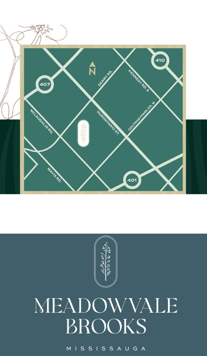 Set in one of Mississauga’s most desirable neighbourhoods, Meadowvale Brooks offers residents the perfect balance of tranquility and convenience. With quick access to Highways 401 and 407, two nearby GO stations, and a wealth of parks, schools, and shopping, it’s ideally positioned for both lifestyle and long-term growth.